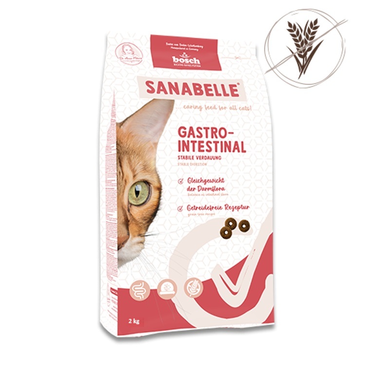 Корм Sanabelle Gastrointestinal специально разработан для оптимальной поддержки чувствительной пищеварительной системы кошек с чувствительным пищеварением. Его исключительно высокая усвояемость и повышенная энергетическая ценность заметно облегчают работу желудочно-кишечного тракта и способствуют быстрому восстановлению — идеально подходит после ветеринарного лечения или при хронических проблемах с пищеварением.